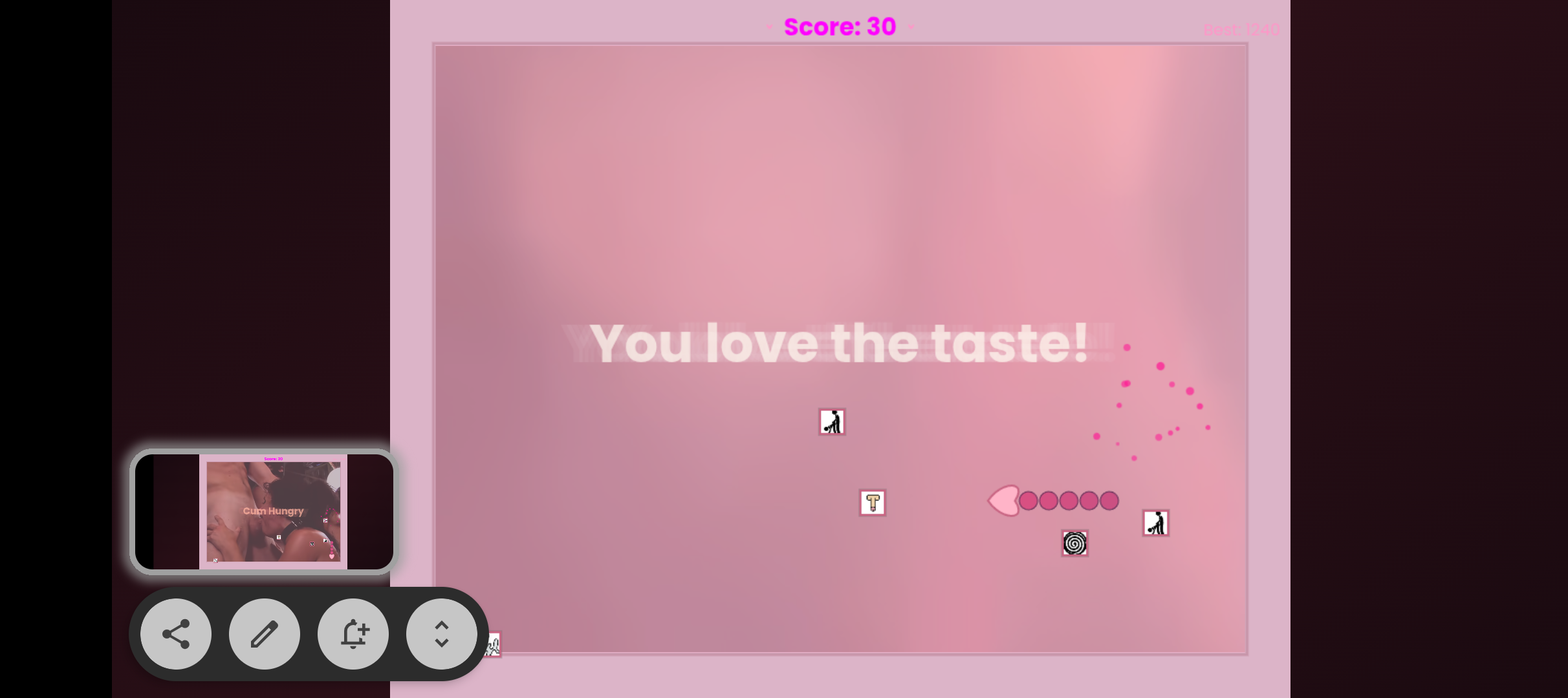 This is a Nokia snake-like adult game focusing on sissification, femdom, cum play, BBC, cuckolding and sissy hypno.